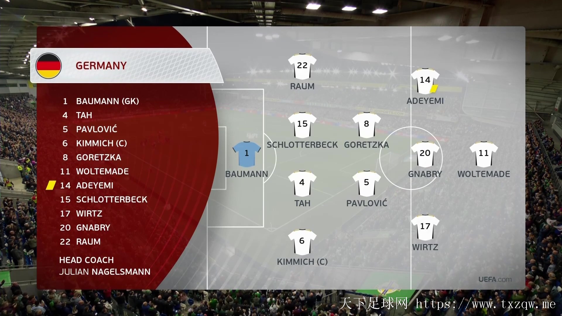 主题 : 10月14日 2025世预赛欧洲区 北爱尔兰VS德国 国语 1080P TS 6.02GB【百度+夸克】